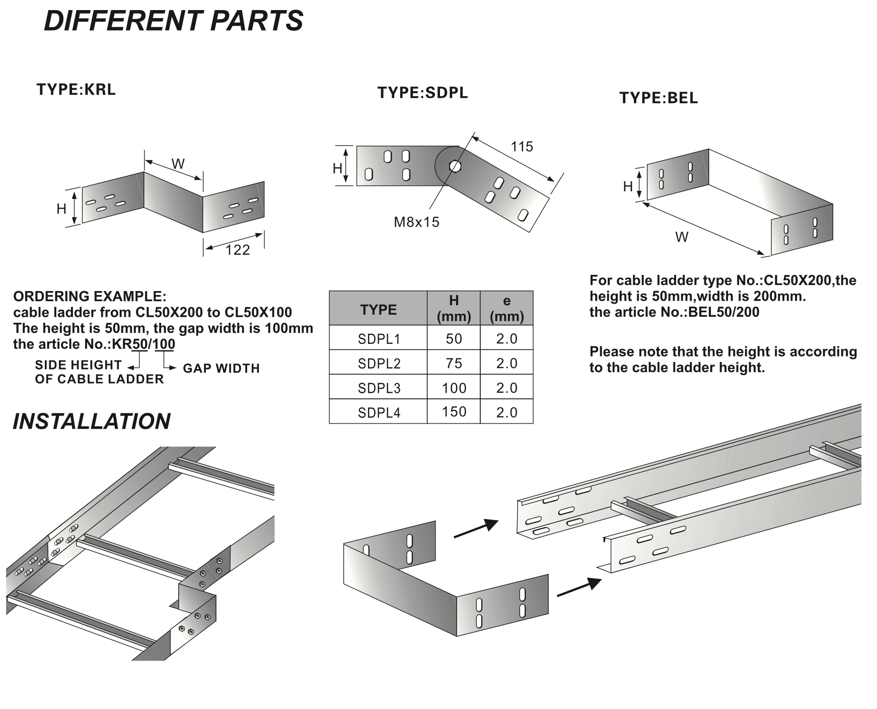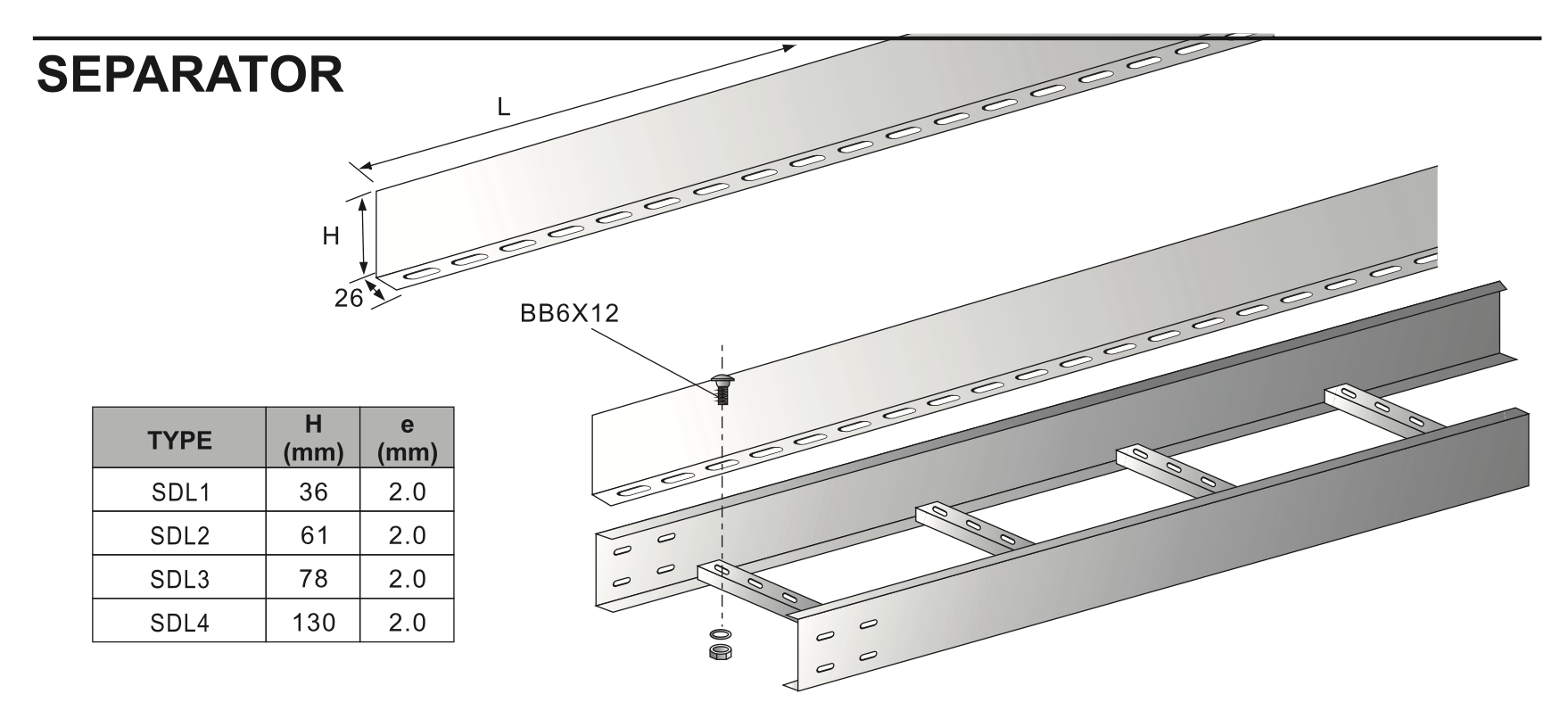 PERFORATED TYPE CABLE LADDERS ACCESSORIES (DIFFERENT PARTS/SEPARATOR)