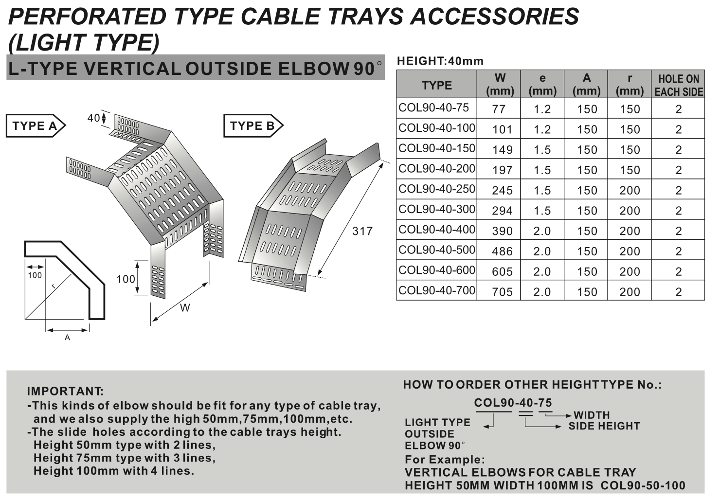 PERFORATED CABLE TRAYS ACCESSORIES (LIGHT TYPE)