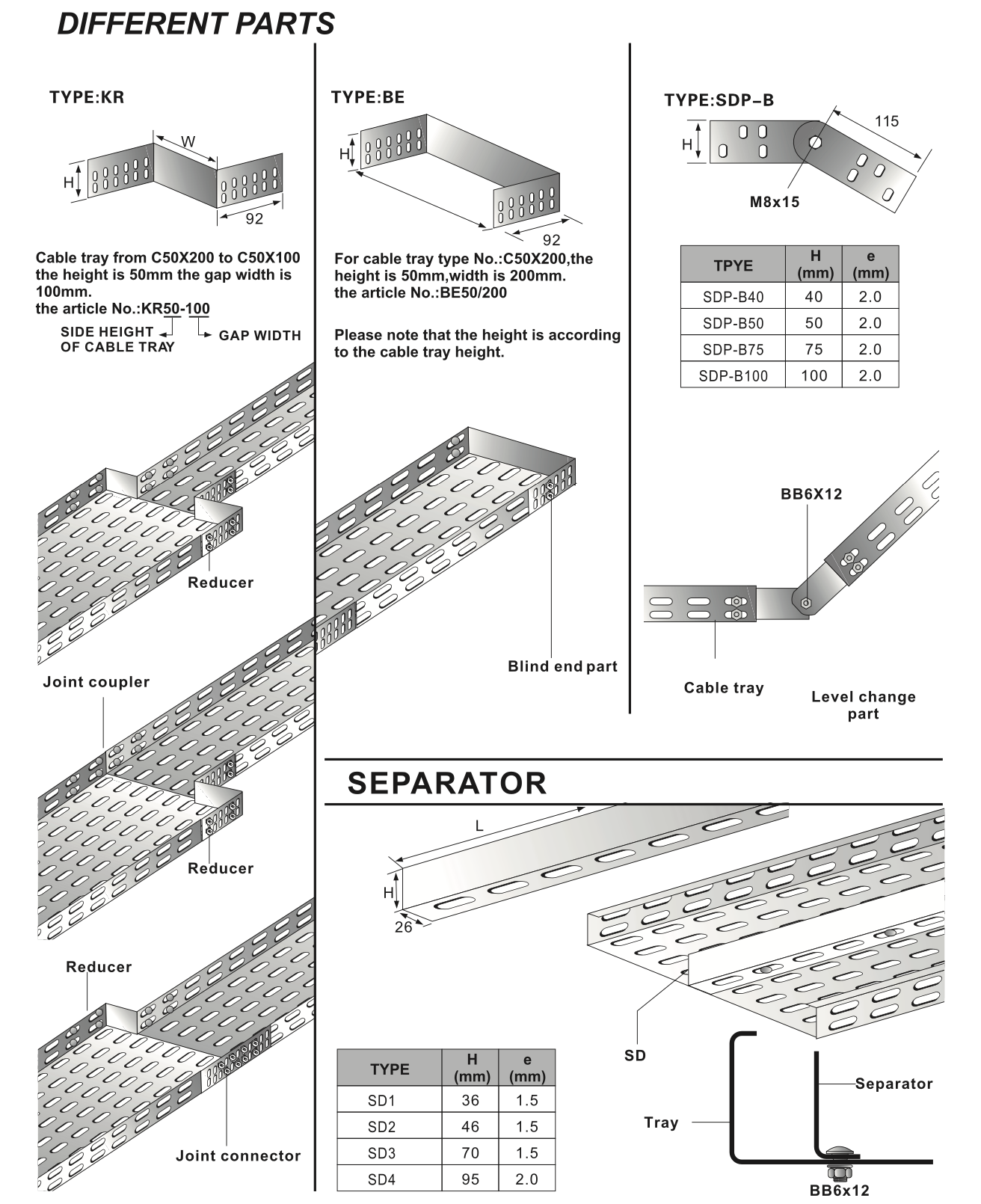 PERFORATED CABLE TRAYS DIFFERENT PARTS