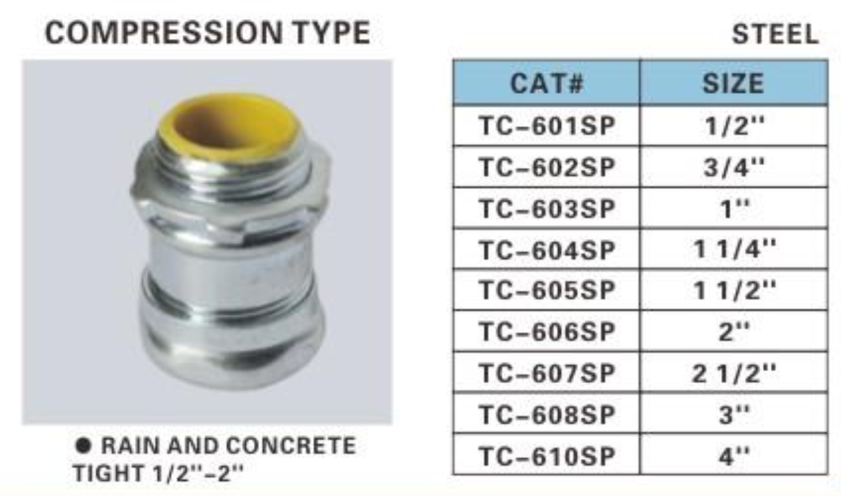 ALEX® EMT Compression Type Connectors are designed to provide secure and reliable connections for Electrical Metallic Tubing (EMT). Made from high-quality steel, these connectors ensure excellent durability and resistance to corrosion, making them suitable for a variety of electrical installations, including rain and concrete-tight applications.