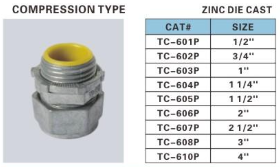 ALEX® EMT Compression Type Connectors are designed to provide secure and reliable connections for Electrical Metallic Tubing (EMT). Made from high-quality zinc die cast, these connectors ensure excellent durability and resistance to corrosion, making them ideal for a variety of electrical installations.
