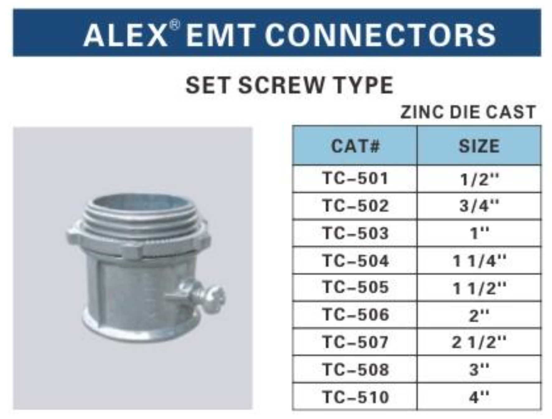 ALEX EMT CONNECTORS - SET SCREW TYPE ZINC