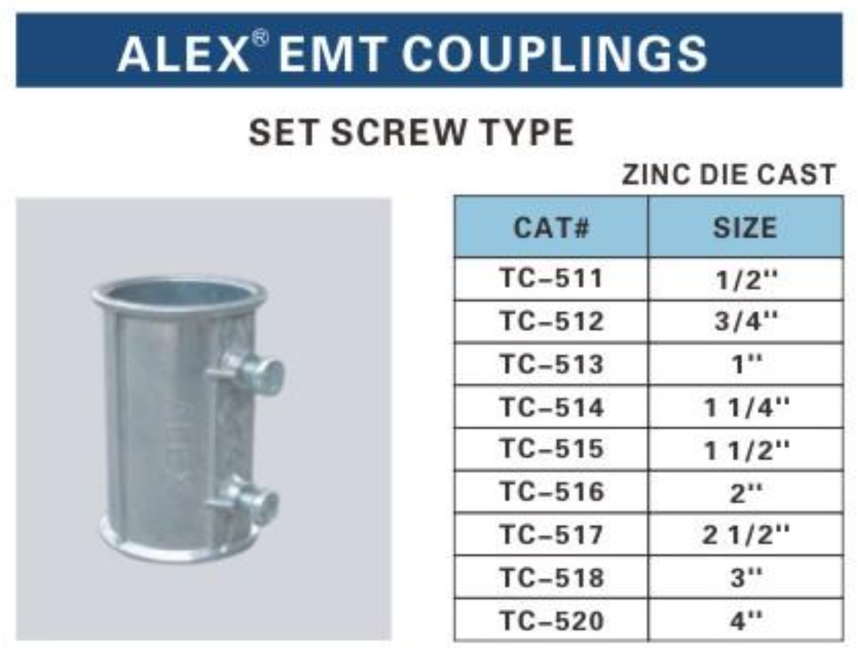 About ALEX EMT ZINC FITTINGS:
