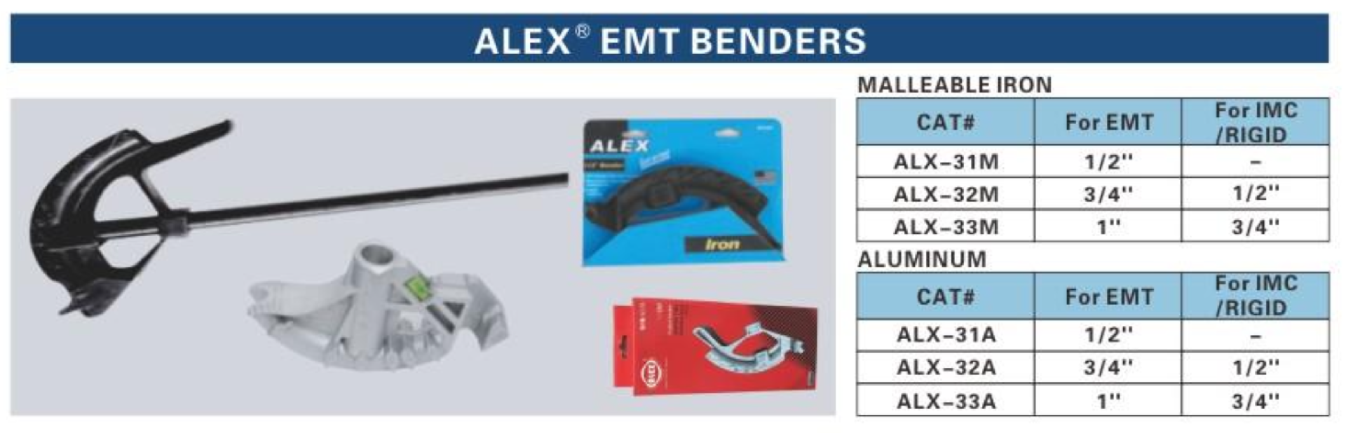 ALEX® EMT Benders Malleable Iron/Aluminum
