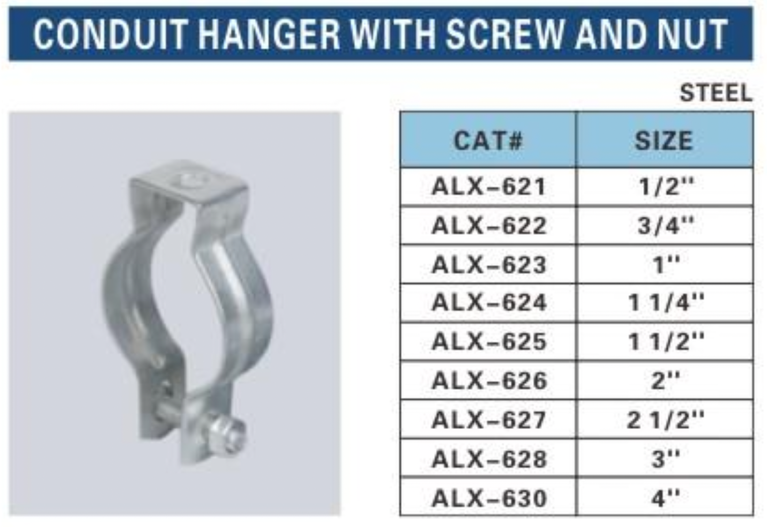 ALEX® Conduit Hangers have different thickness to choose the thicker the steel, the better the quality. Every Conduit Hanger has zinc plated to protect the rust.