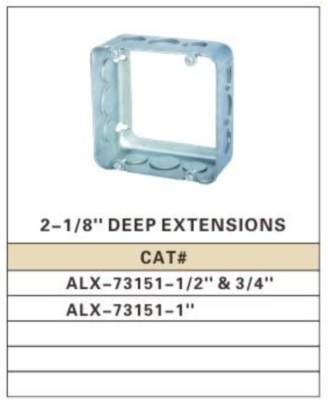 ALEX® 4-11/16'' Square Conduit Box Extensions are engineered to meet the highest standards, ensuring reliable and durable solutions for your electrical projects. We deliver only the best.