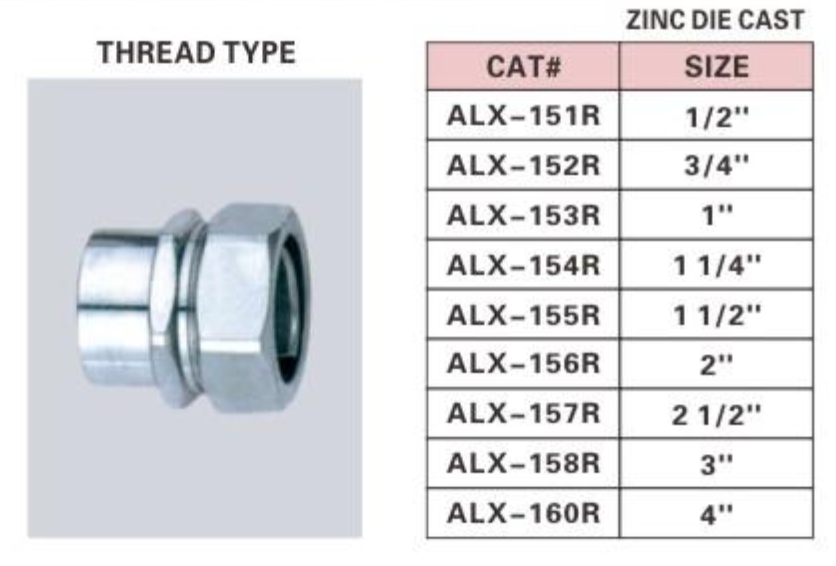 ALEX FLEX TO RIGID STEEL CONDUIT CONNECTORS THREAD TYPE