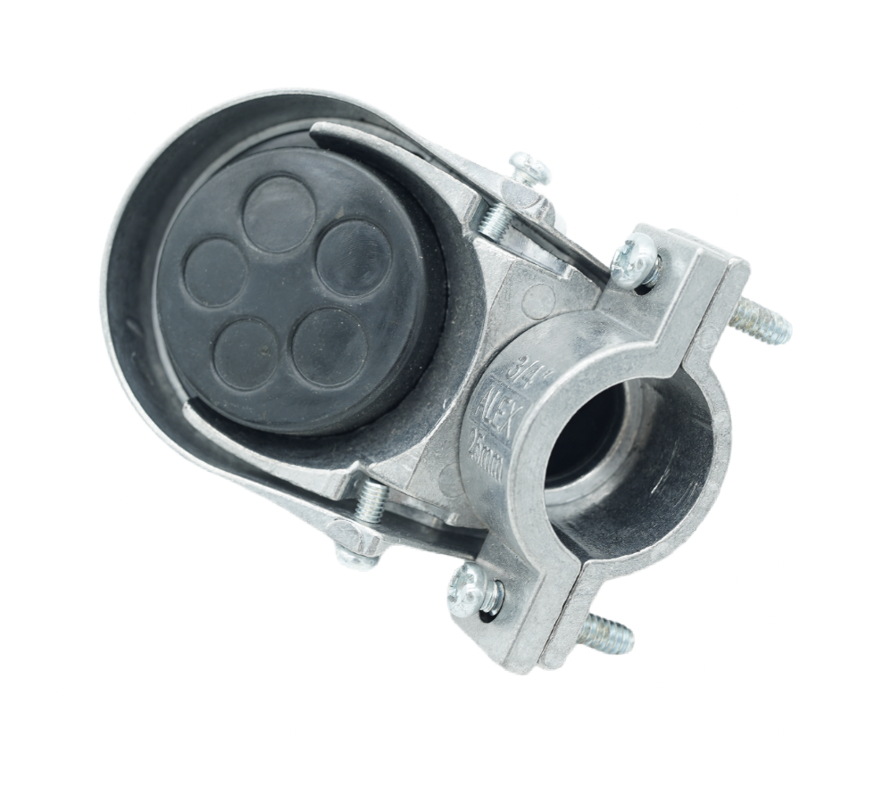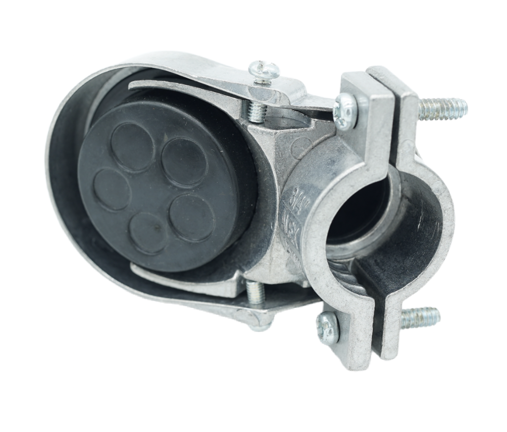 The Clamp-on design allows for secure attachment to unthreaded conduits (such as EMT) without the need for threading tools, ensuring a stable and weather-resistant connection in outdoor industrial and residential environments.