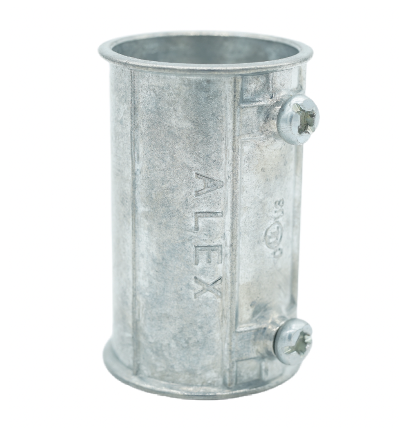 The ALEX® EMT Metric Coupling is a specialized fitting designed to securely join two lengths of IEC standard Electrical Metallic Tubing (EMT). Engineered for speed and reliability, it ensures a tight, seamless connection that maintains the mechanical integrity and grounding continuity of the conduit system.