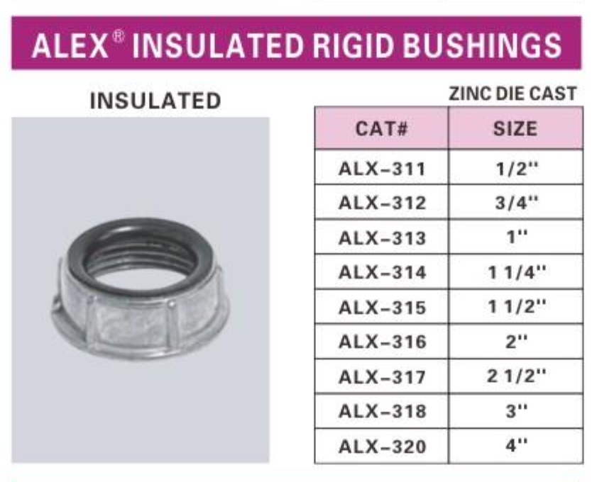 ALEX® Insulated Rigid Bushings are engineered to meet the highest standards, providing reliable and durable solutions for your electrical projects. We deliver only the best.