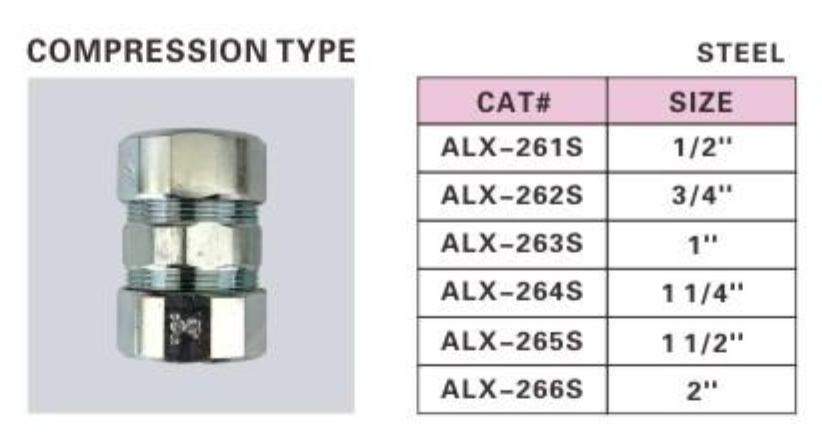 ALEX® Rigid Compression Type Couplings are designed to securely connect sections of rigid conduit, ensuring a continuous and reliable conduit system. These couplings provide a secure fit, making them ideal for a variety of electrical conduit installations.