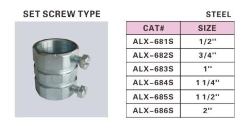 ALEX® Rigid Couplings - Set Screw Type are designed to connect two sections of rigid conduit securely. These couplings provide a smooth and reliable connection, making them ideal for a variety of electrical installations.