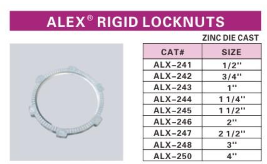 ALEX® Rigid Locknuts are engineered to meet the highest standards, ensuring reliable and durable solutions for your electrical projects. We deliver only the best.