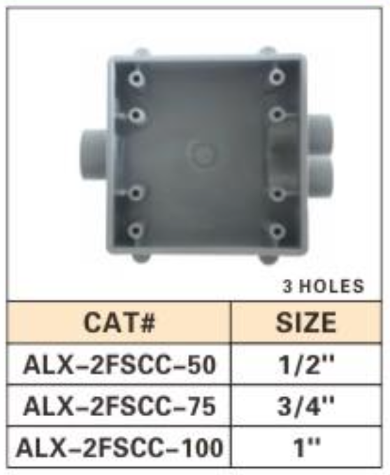 Warranty:ALEX® Two Gang FS Boxes come with a one-year warranty from the date of purchase, ensuring peace of mind and reliable protection for your electrical conduit systems.