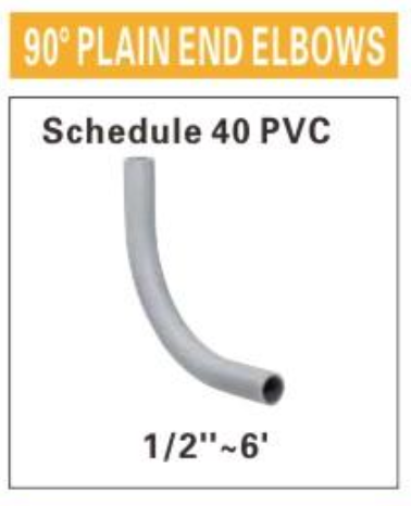 ALEX® 90° Plain End Elbows (Schedule 40 PVC) are designed to provide a smooth and reliable directional change in your PVC conduit systems. The plain ends allow for easy connection to other conduits or fittings, ensuring a secure and efficient installation.