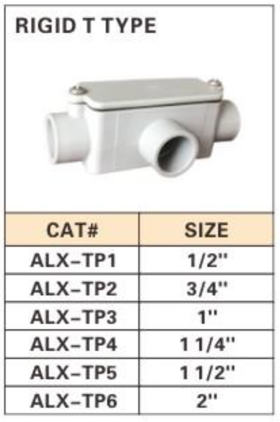 Description:ALEX® Rigid Nonmetallic Conduit Bodies are designed for use in nonmetallic conduit systems to connect sections, change directions, or provide access for wire pulling, splicing, and maintenance. Available in various types (LB, T, LR, LL, C, and E) to suit different conduit configurations, these conduit bodies offer a durable and secure solution for electrical installations. Made from high-quality, nonmetallic materials, they ensure corrosion resistance and long-lasting performance.