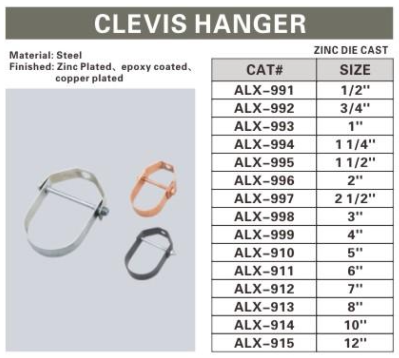 ALEX® Clevis Hanger is expertly designed to provide secure support for pipes and conduits in a variety of industrial and commercial settings. Constructed from durable steel and finished with zinc plating, epoxy coating, or copper plating, this hanger offers exceptional corrosion resistance and long-lasting performance. The clevis design ensures stability and ease of installation, making it an ideal choice for suspending piping systems.