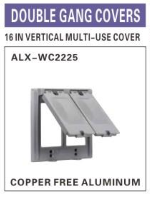 Description:ALEX® Double Gang Covers are made from high-quality zinc die-cast and copper-free aluminum, providing excellent durability and corrosion resistance. These covers are designed to accommodate various combinations of outlets and switches, including Duplex, Duplex & Switch, GFCI, Toggle Switch, and Power Outlets. The covers offer robust protection against environmental factors, making them suitable for both residential and commercial applications. Easy to install, these covers ensure long-lasting performance and safety.