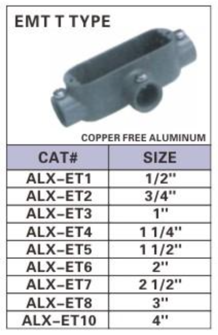 ALEX EMT/RGD CONDUIT BODIES-T TYPE
