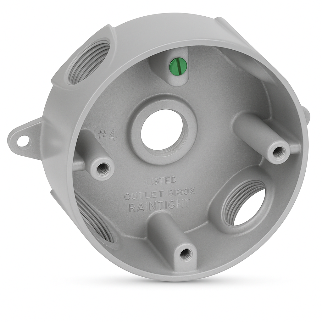 ALEX® DB One Gang Deep Boxes and 4" Round Boxes are expertly crafted from high-quality copper-free aluminum, providing excellent corrosion resistance and durability. These boxes are designed to securely house electrical connections and devices, making them suitable for both indoor and outdoor applications. Available in configurations with 3, 4, or 5 holes, and a 4" round version, these boxes offer the flexibility needed to accommodate various conduit layouts and electrical setups. Each box comes complete with closure plugs, grounding screws, and mounting lugs, ensuring a straightforward and efficient installation process.