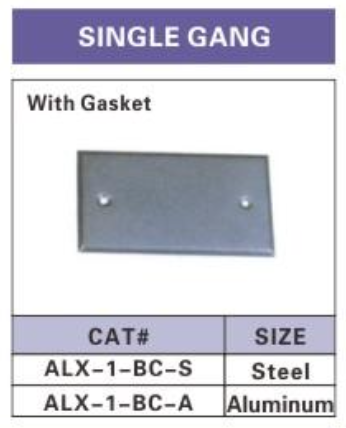 Description:ALEX® Single Gang Covers with Gasket are crafted to provide a secure and reliable cover for single-gang electrical boxes, offering superior protection against dust, moisture, and environmental factors. Available in both steel and aluminum, these covers are designed to meet various installation requirements. The included gasket ensures a tight seal, enhancing the durability and safety of the installation.